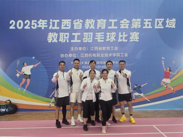 2025年11月15日,我校教工羽毛球队在“2025年江西省教育工会第五区域教职工羽毛球比赛”中表现亮眼,凭借顽强拼搏与团队协作,最终斩获团体第二名,充分展现了我校教工昂扬向上、勇于争先的精神风貌。